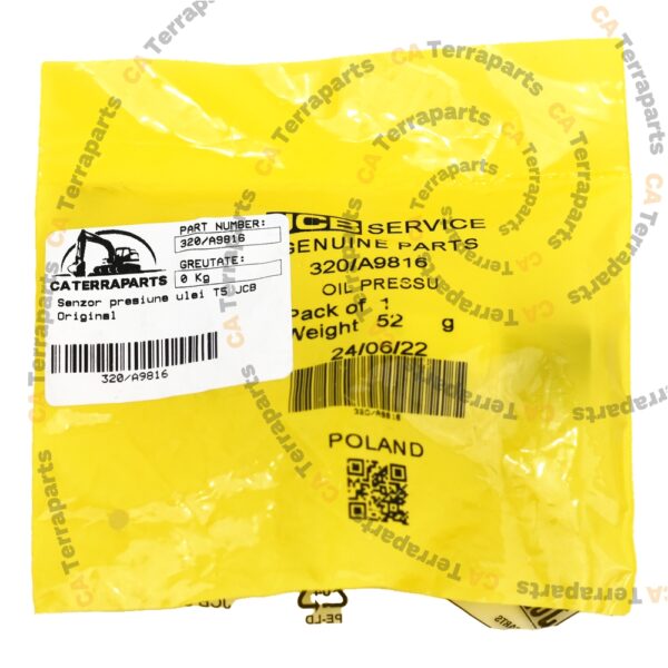 Senzorul de presiune a uleiului original JCB este o piesă esențială pentru funcționarea optimă a utilajului greu. Acest senzor de presiune a uleiului ajută la monitorizarea și reglarea nivelului corect al presiunii uleiului în motor, contribuind astfel la prevenirea daunelor și avarierilor costisitoare. Fiind o piesă originală JCB, acest senzor garantează compatibilitate perfectă și calitate superioară. Instalarea acestui senzor la utilajele JCB asigură o funcționare eficientă și sigură a motorului, prelungind durata de viață a utilajului și reducând riscul de defecțiuni neprevăzute. Alegeți senzorul de presiune a uleiului original JCB pentru performanță și fiabilitate garantate.